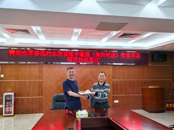 三是以责任担当践行为民宗旨。用心用情用力做好群众工作,发挥支部先锋示范作用。树牢群众观念。支部坚持以党建带群建,与梅州水库移民村委保持良好的沟通联系,组织党员干部深入移民村清理道路、排水沟渠枝叶,提升公共环境卫生;实施并完成梅州水库移民村中灌渠维修项目,显著降低灌渠渗漏损失,有效提升灌渠供水效率,便利村民生产生活;春节前联合广东楹联学会书法院、移民村委开展“走基层、写春联、送祝福”新春惠民活动,向村民送去关怀慰问,构建和谐邻里圈,增进村民对水库的归属感和认同感。移民村为此专程送来镌写“帮扶项目办实事,造福移民暖人心”的锦旗。