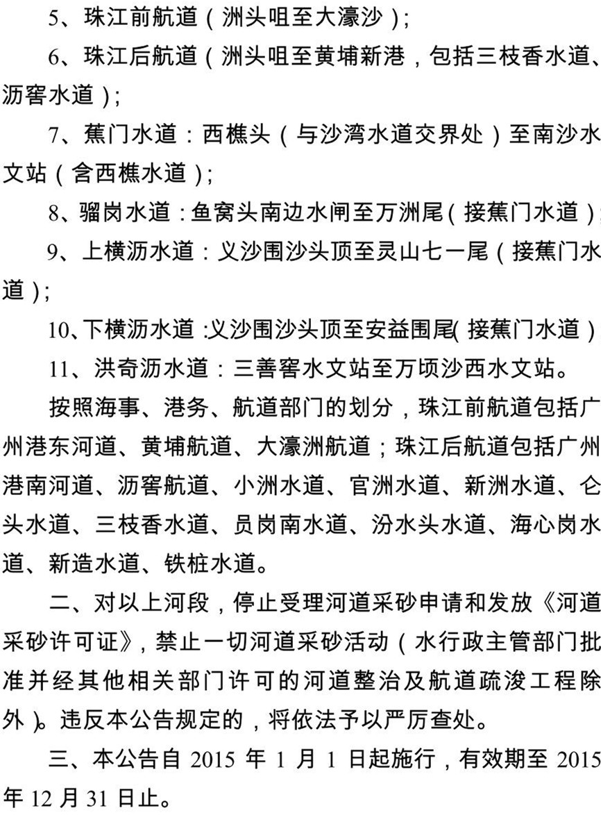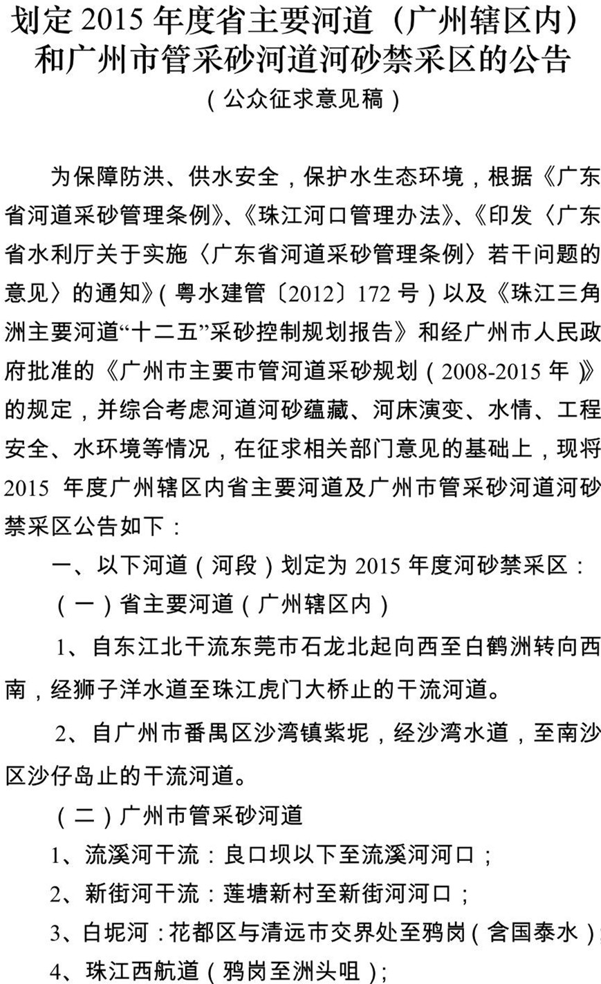 另附“关于划定省主要河道(广州辖区内)和抖音风 市管采砂河道2015年度河砂禁采区的公告(公众征求意见稿)”如下: