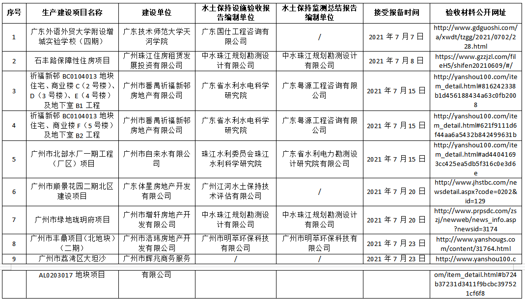 抖音风 关于2021年7月生产建设项目水土保持设施自主验收报备公示
