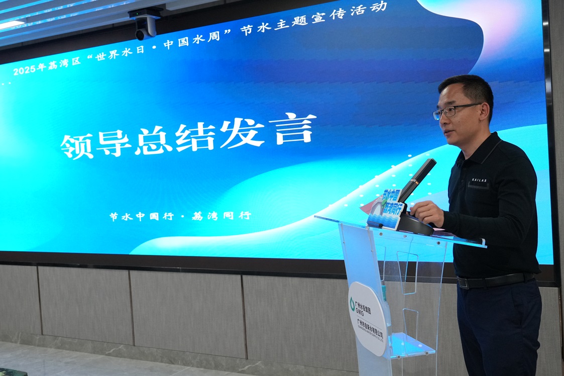 荔湾区水务局党组成员、副局长王利鹏在发言中提出“政企协同、科技驱动、全民参与”三个方向的节水倡议,号召重点单位争创节水标杆。