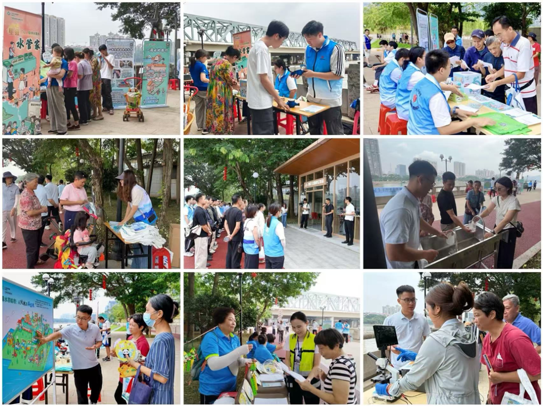 户外科普环节,区水务局、区发改局负责同志共同领读《公共机构节水倡议》,现场大屏播放《奇妙节水课》,设置4个互动摊位,以“沉浸式体验”激发市民学生节水热情。