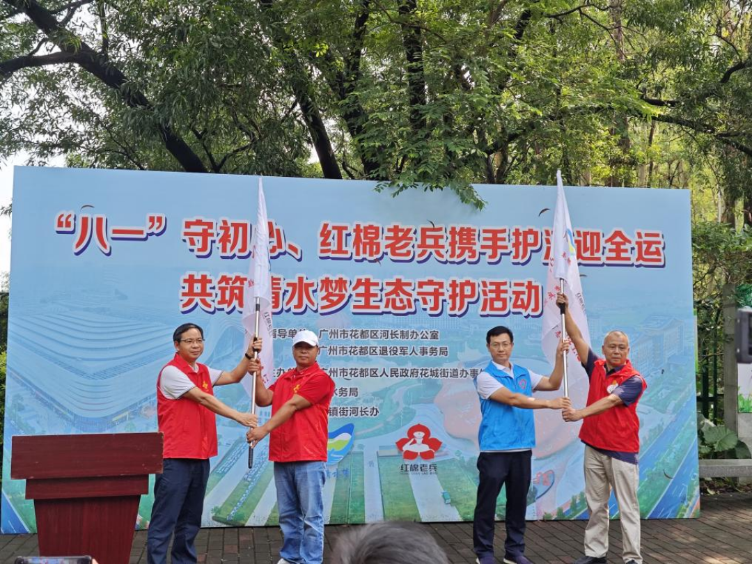 为深入践行习近平生态文明思想,积极响应十五运会“绿色、共享、开放、廉洁”办赛理念,在“八一”建军节这个充满光荣与敬意的日子,花都区河长制办公室联合区退役军人事务局、花城街道于秀全驿站举办“八一”守初心、红棉老兵携手护河迎全运——共筑清水梦生态守护活动启动仪式。