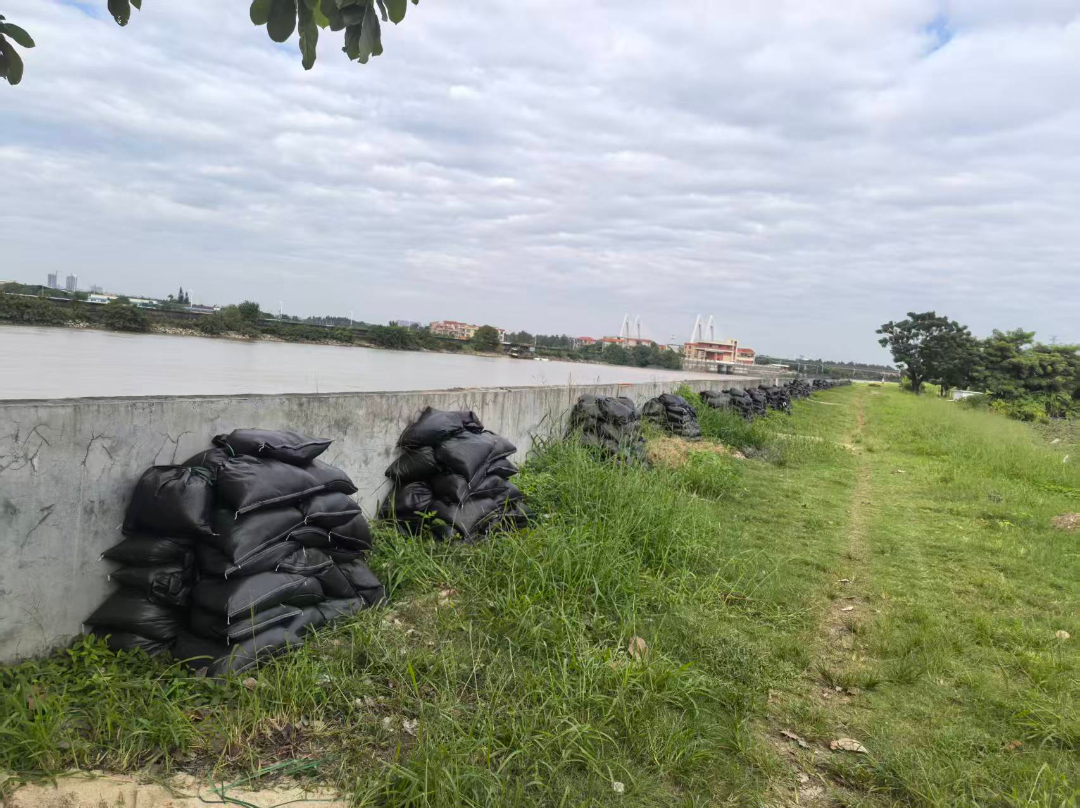 台风影响期间,南沙区水务局组织召开专家技术会,密切关注水情潮位,动态调整措施,高效处置突发状况。9月24日中午,蕉西水闸外江水位超过原50年一遇设计水位,现场巡查发现闸门漫顶溢水、交通桥两岸衔接处挡水墙渗漏等险情,经现场专家综合研判,维持交通桥外江侧砂袋反压措施,渗漏点采取砂袋抛投反滤措施,仅用1小时基本完成处置工作,顺利渡过险情。9月24日下午,东涌镇东导村沙湾水道外江堤防背水侧涵窦口出现涌水险情,南沙区水务局立即联动属地镇开展应急处置工作,并安排积水抽排,随着外江退潮,涌水险情得到及时解决。