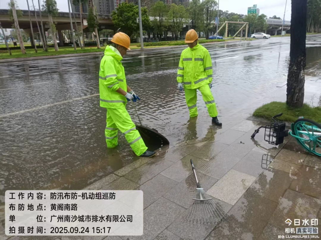 本轮台风影响期间,南沙区水务局派出工作人员全面巡查全区易涝积水点,并到港湾街工业二路、万洲桥底、黄阁东一路水浸区域进行现场指挥调度,落实排水防涝应急处置工作。本轮降雨共出动抢险人员256人次、定点布防队伍43组次、巡防队伍42组次,龙吸水3台次、抽水设备91台次、抢险车辆72车次。