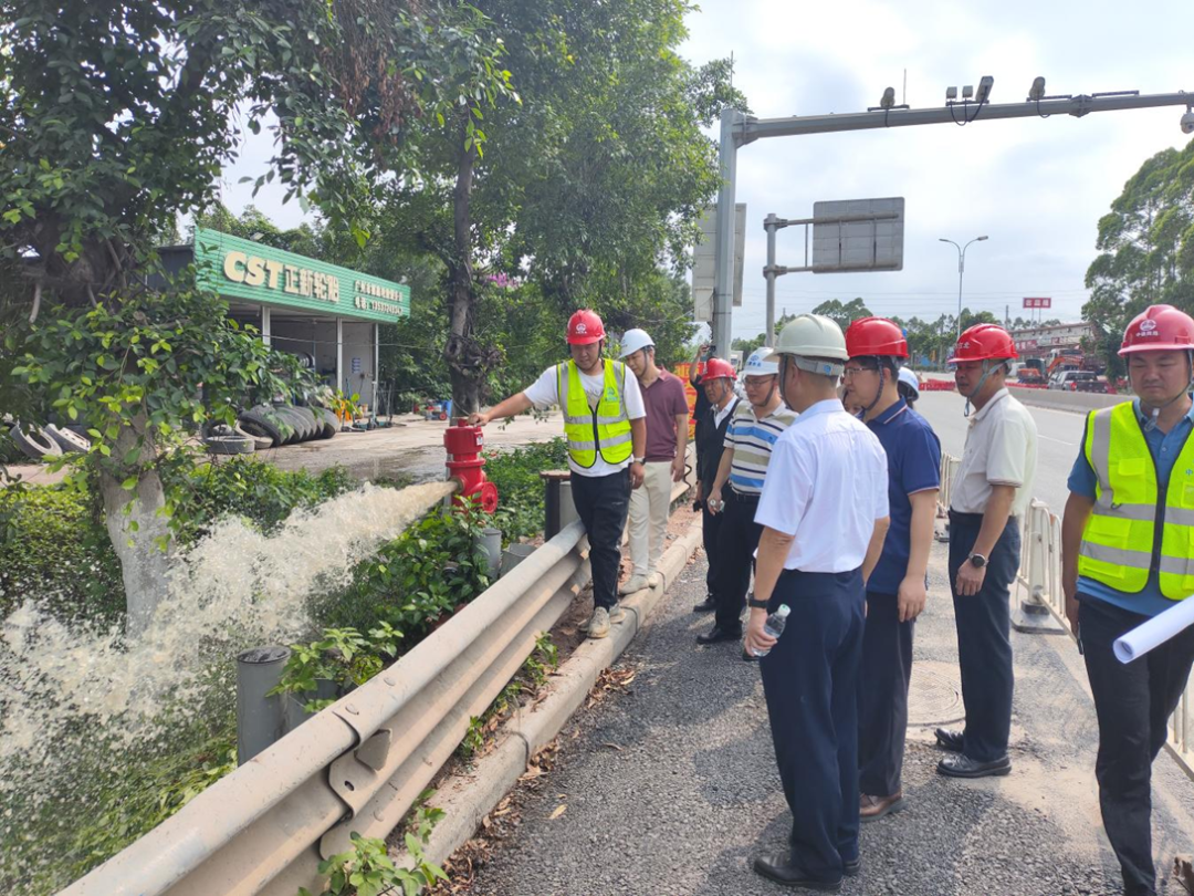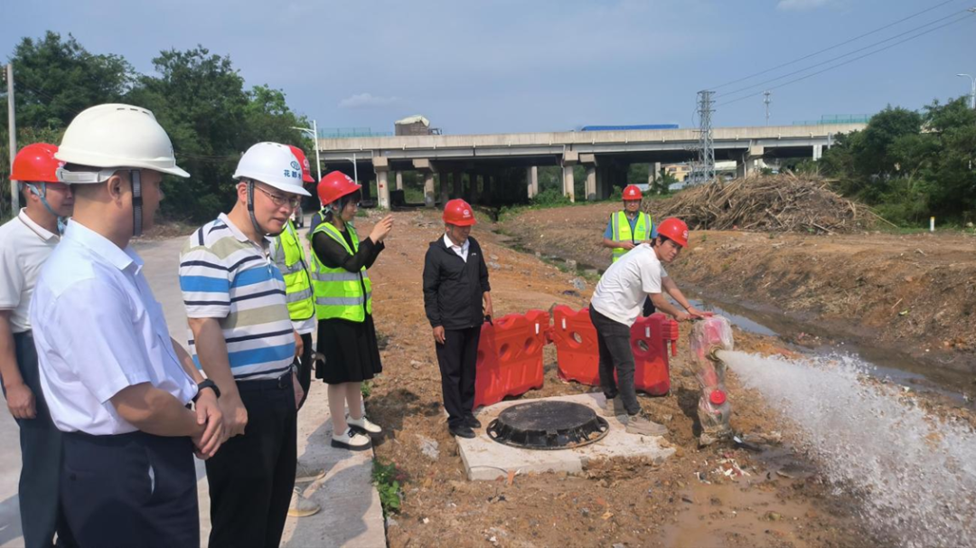 调研组现场查看了赤坭镇国泰、东升供水主管项目的建设情况,并听取花都区水务局和花都区水务建管中心汇报通水工作进展和收尾工作计划。