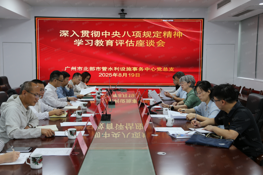 近日,市北部事务中心党总支召开了深入贯彻中央八项规定精神学习教育评估工作座谈会,中心党总支委员、各支部书记和部分党员、群众代表参加了会议。市水务局党组成员、副局长唐清华、局机关党委相关负责人到会指导。