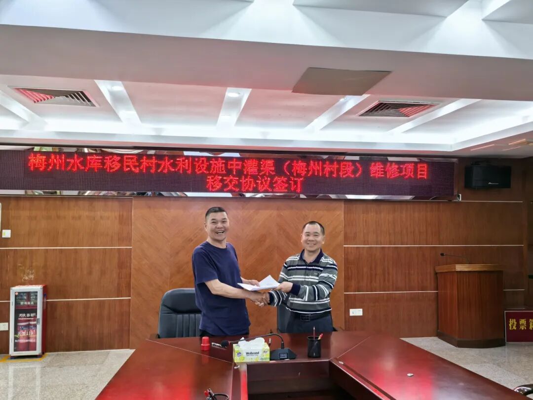 三是以责任担当践行为民宗旨。用心用情用力做好群众工作,发挥支部先锋示范作用。树牢群众观念。支部坚持以党建带群建,与梅州水库移民村委保持良好的沟通联系,组织党员干部深入移民村清理道路、排水沟渠枝叶,提升公共环境卫生;实施并完成梅州水库移民村中灌渠维修项目,显著降低灌渠渗漏损失,有效提升灌渠供水效率,便利村民生产生活;春节前联合广东楹联学会书法院、移民村委开展“走基层、写春联、送祝福”新春惠民活动,向村民送去关怀慰问,构建和谐邻里圈,增进村民对水库的归属感和认同感。移民村为此专程送来镌写“帮扶项目办实事,造福移民暖人心”的锦旗。