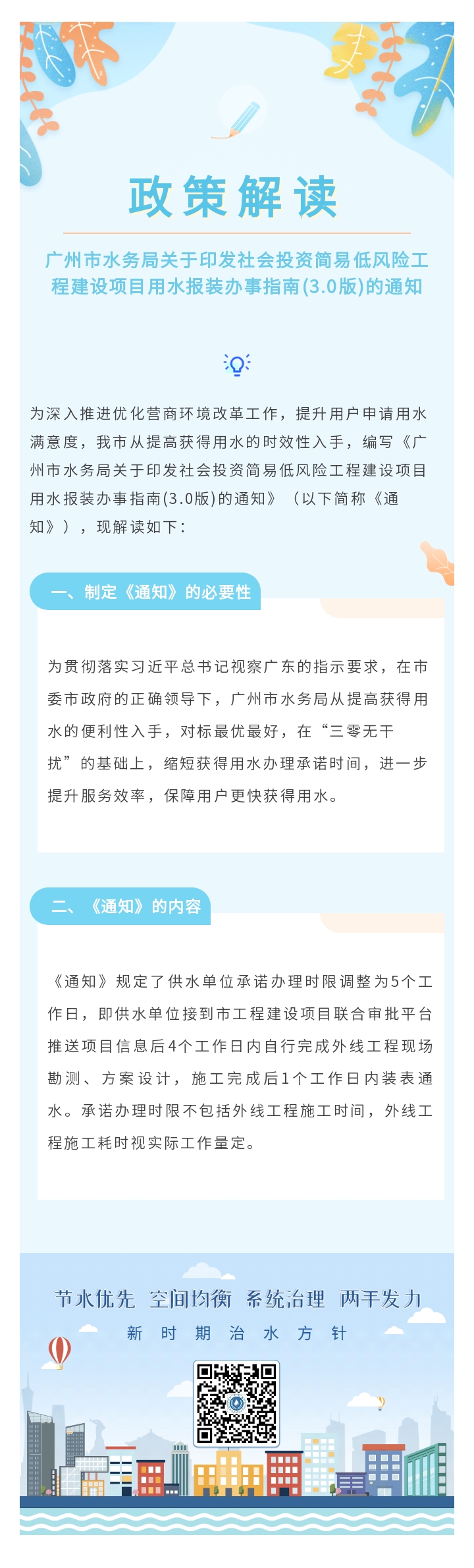 【一图读懂】抖音风 关于印发社会投资简易低风险工程建设项目用水报装办事指南(3.0版)的通知政策解读